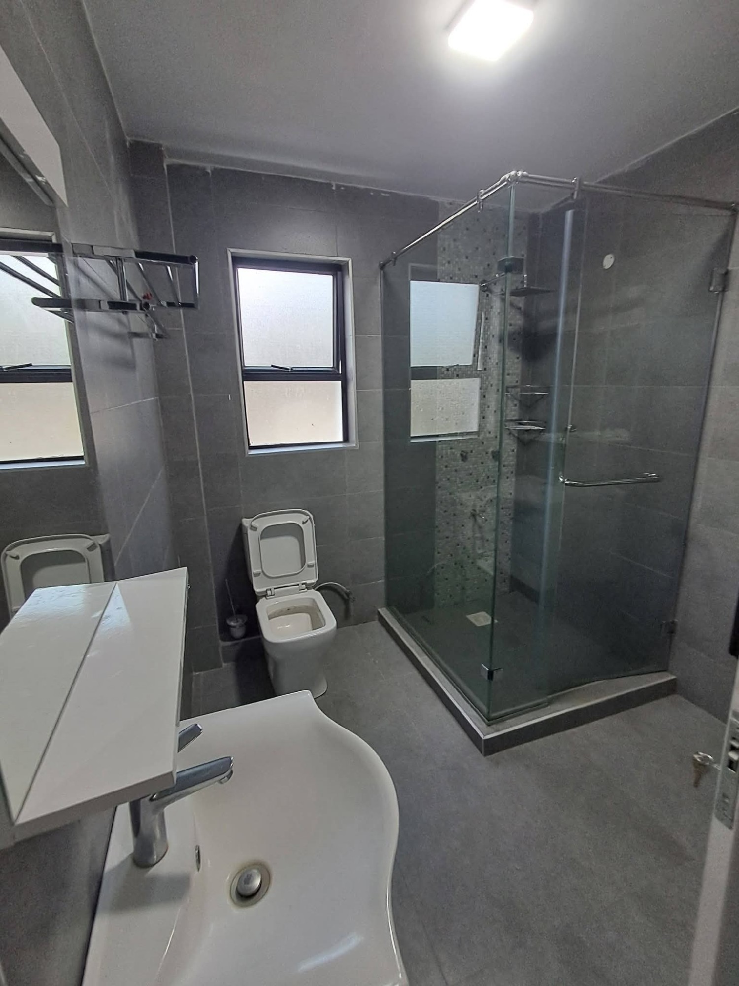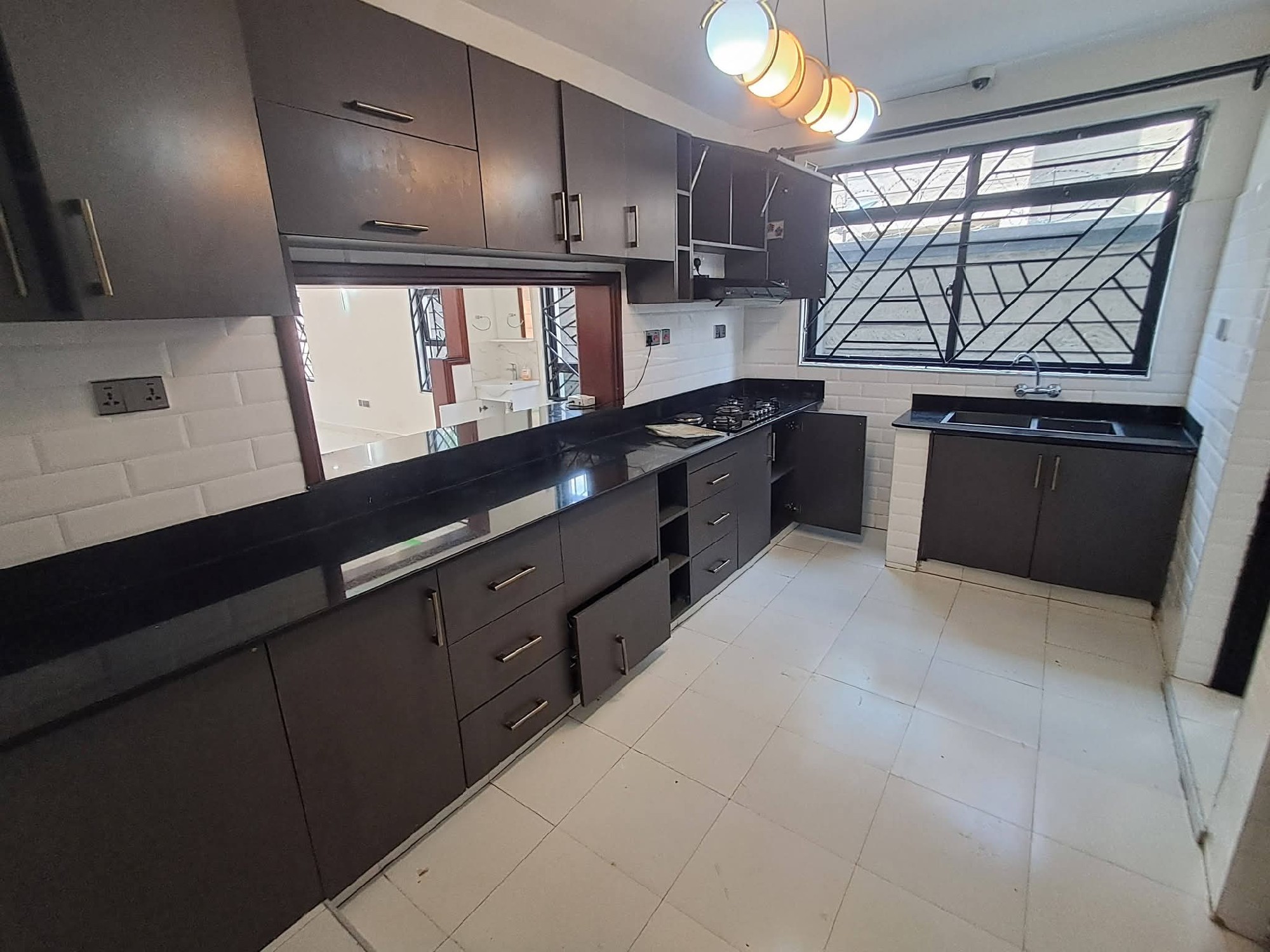 -Spacious dining with another beautiful chandelier provided.A fully fitted kitchen with granite counter tops, cookers, a microwave and several cabinets a spacious pantry area a dhobi area.